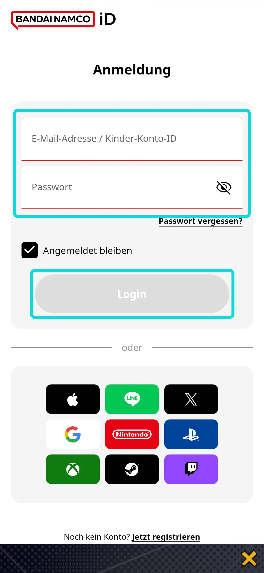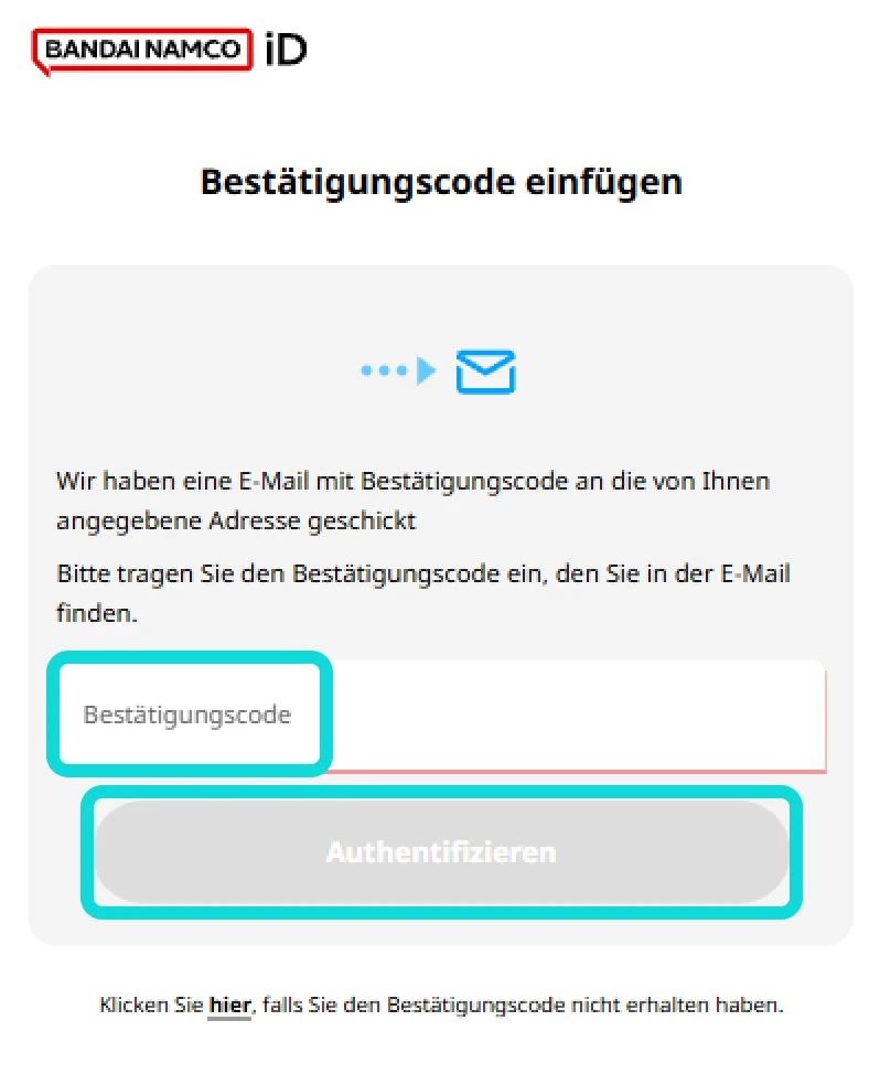 [Hier] klicken, um die Bandai-Namco-ID-Website zu öffnen.