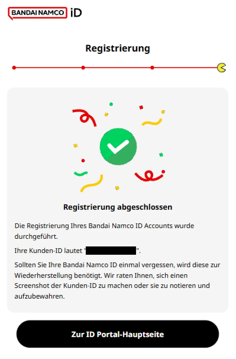 Herzlichen Glückwunsch, Sie haben jetzt eine Bandai Namco ID erstellt.