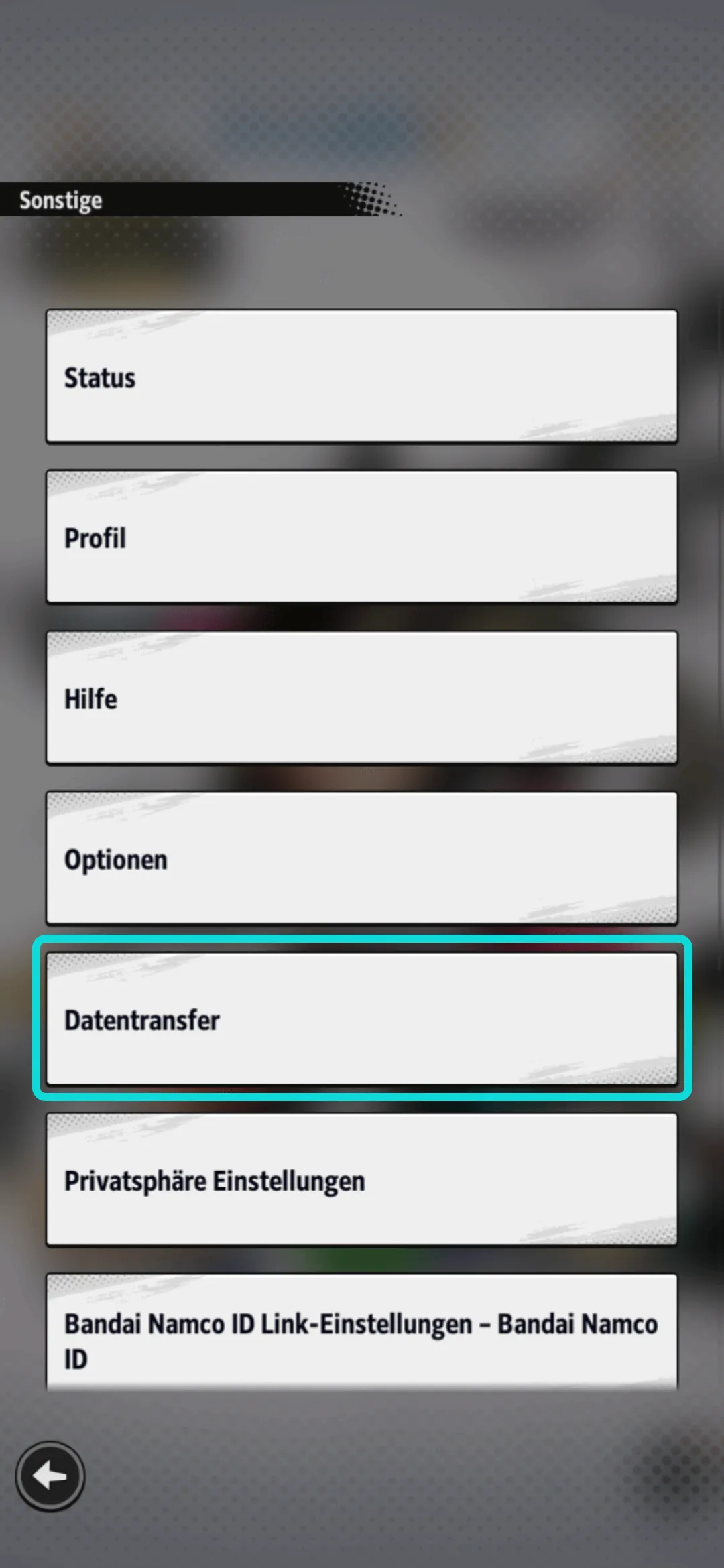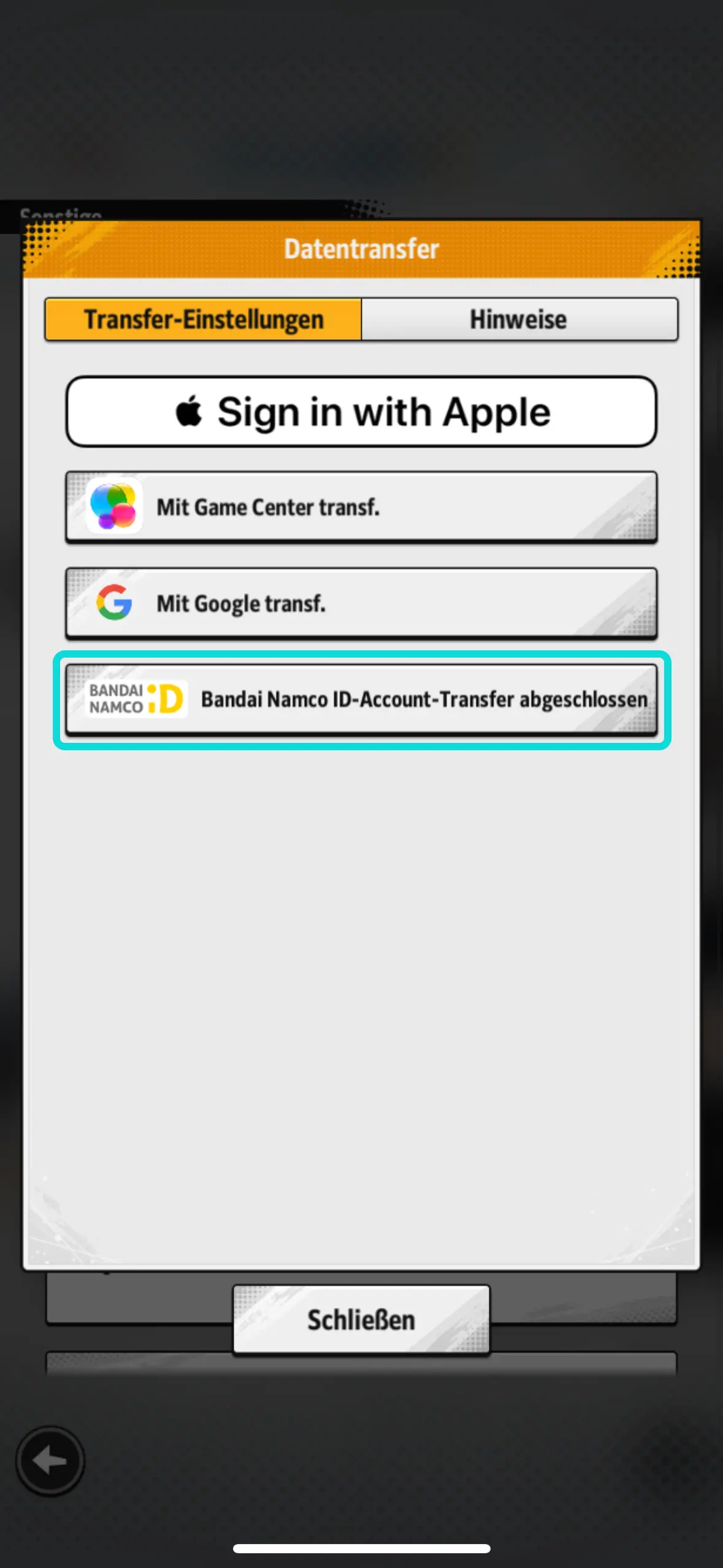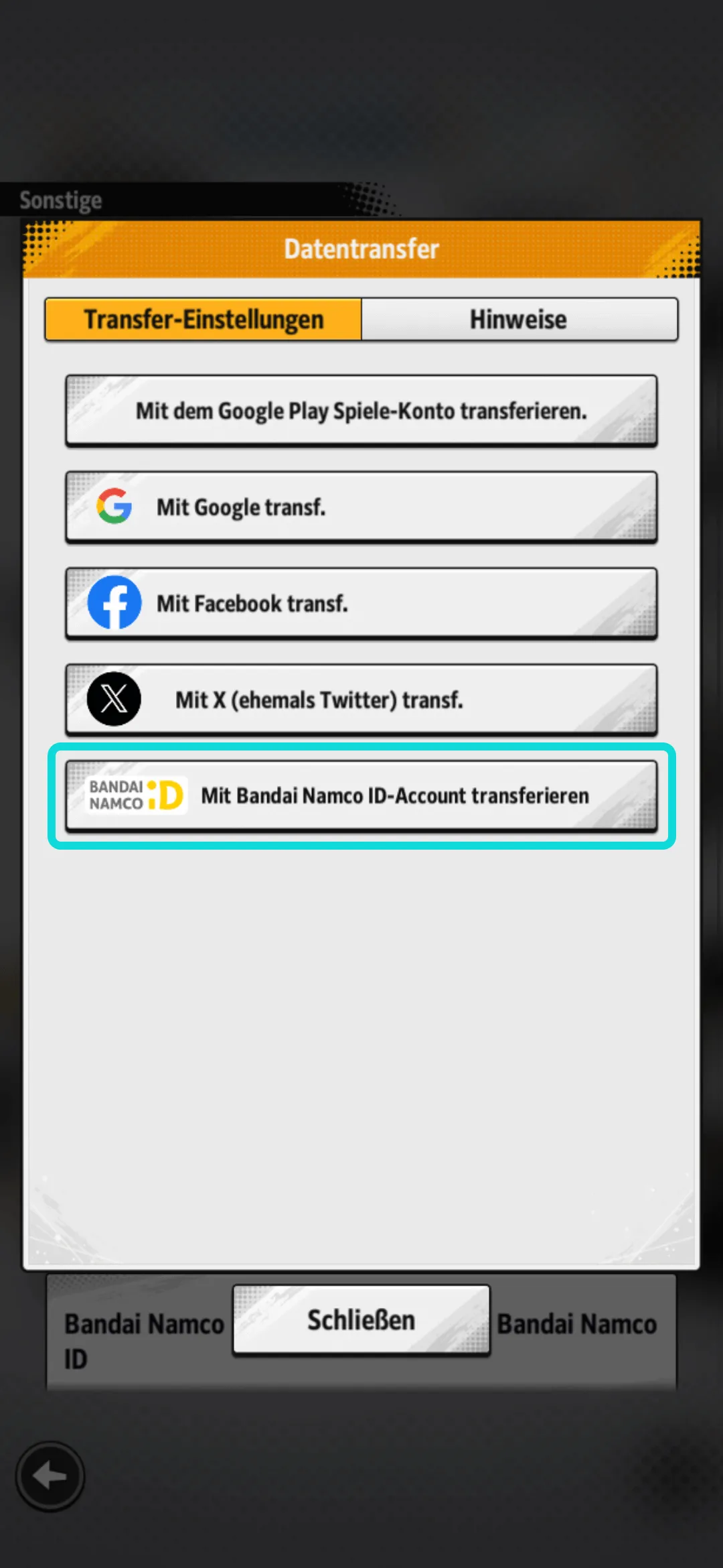 3.2- Tippt auf "Mit Bandai Namco ID-Account transferieren".