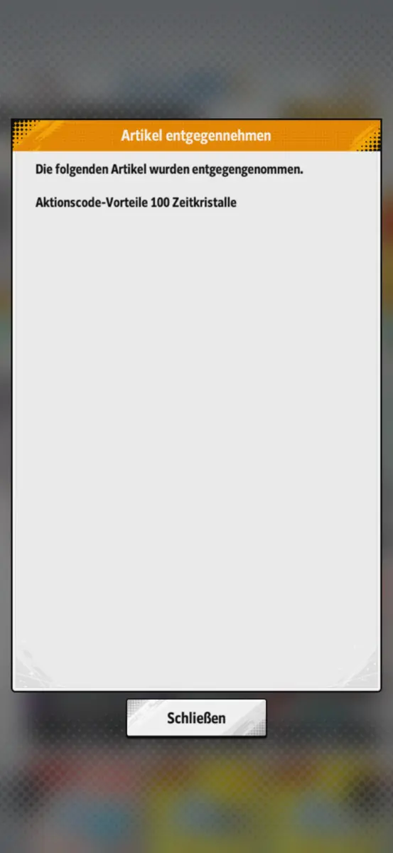 Aktionscodes sind spezielle Codes, die im Web Store eingegeben werden können, um In-App-Gegenstände wie "Zeitkristalle" zu erhalten.