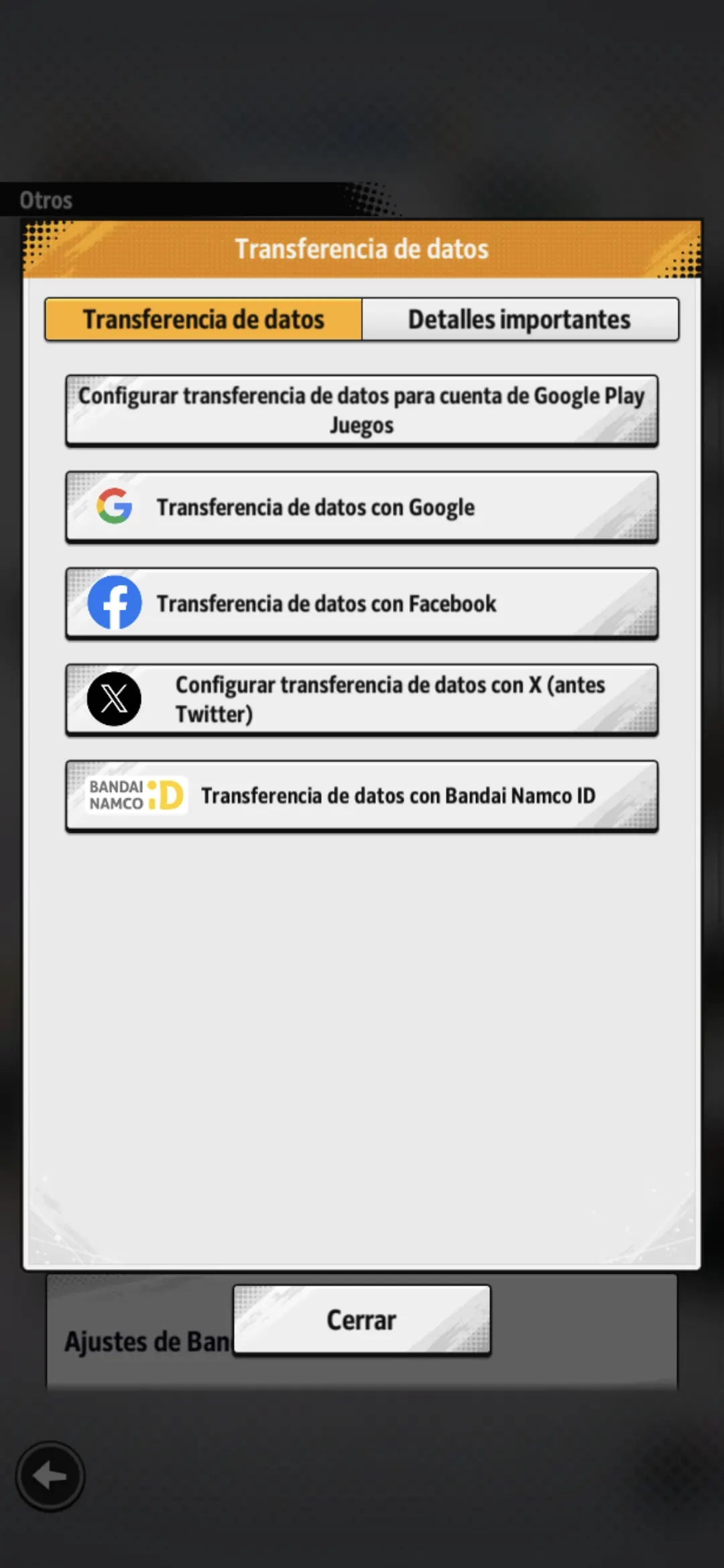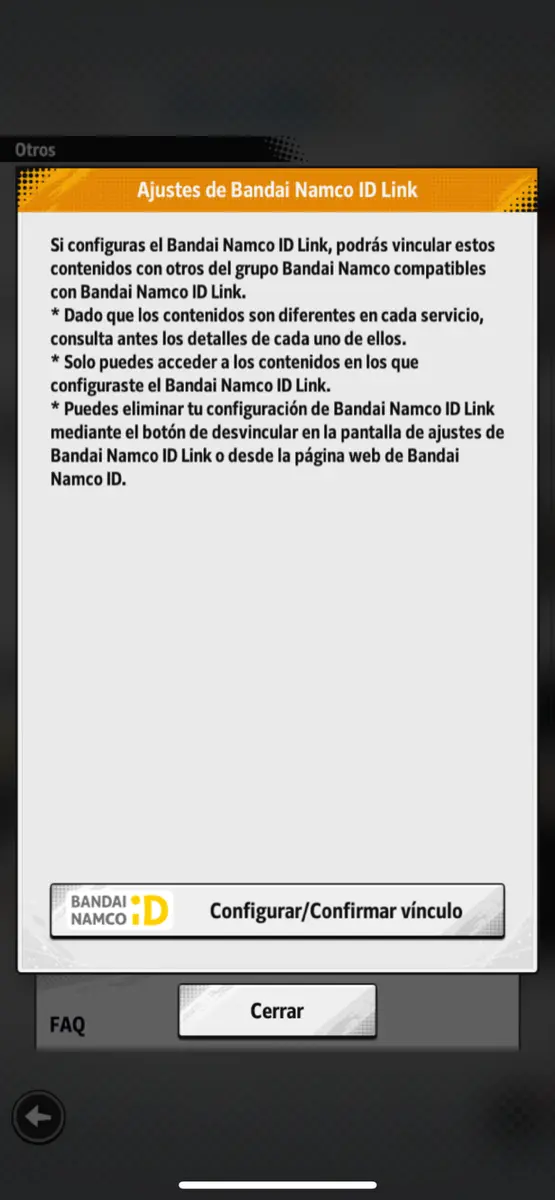 Comprueba una vez más que hayas realizado correctamente la vinculación desde "Transferencia de datos", y no desde "Ajustes de Bandai Namco ID Link".
