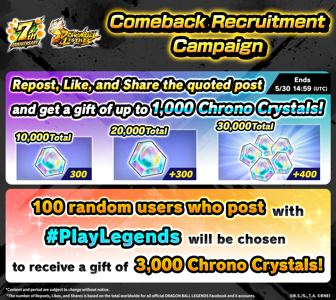 DRAGON BALL LEGENDS LET’S PLAY LEGENDS! COMEBACK RECRUITMENT CAMPAIGN OFFICIAL RULES