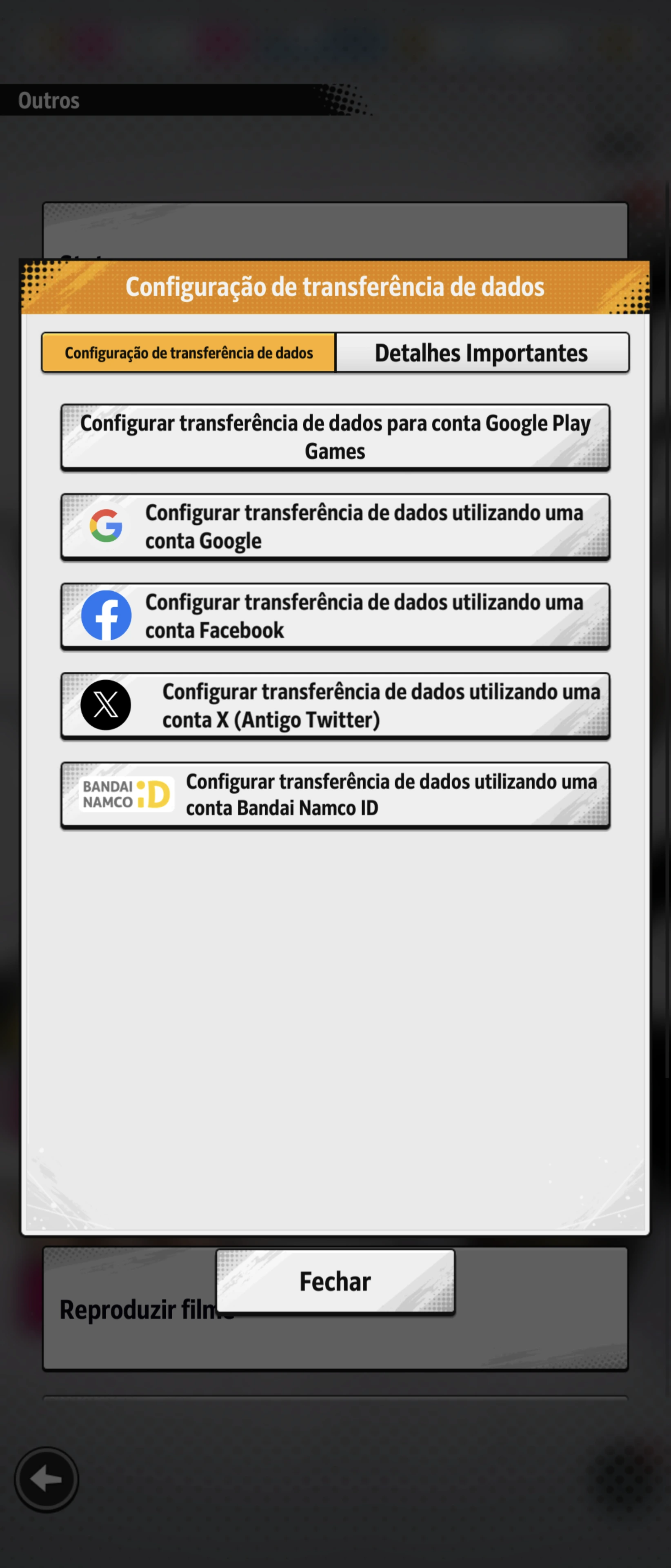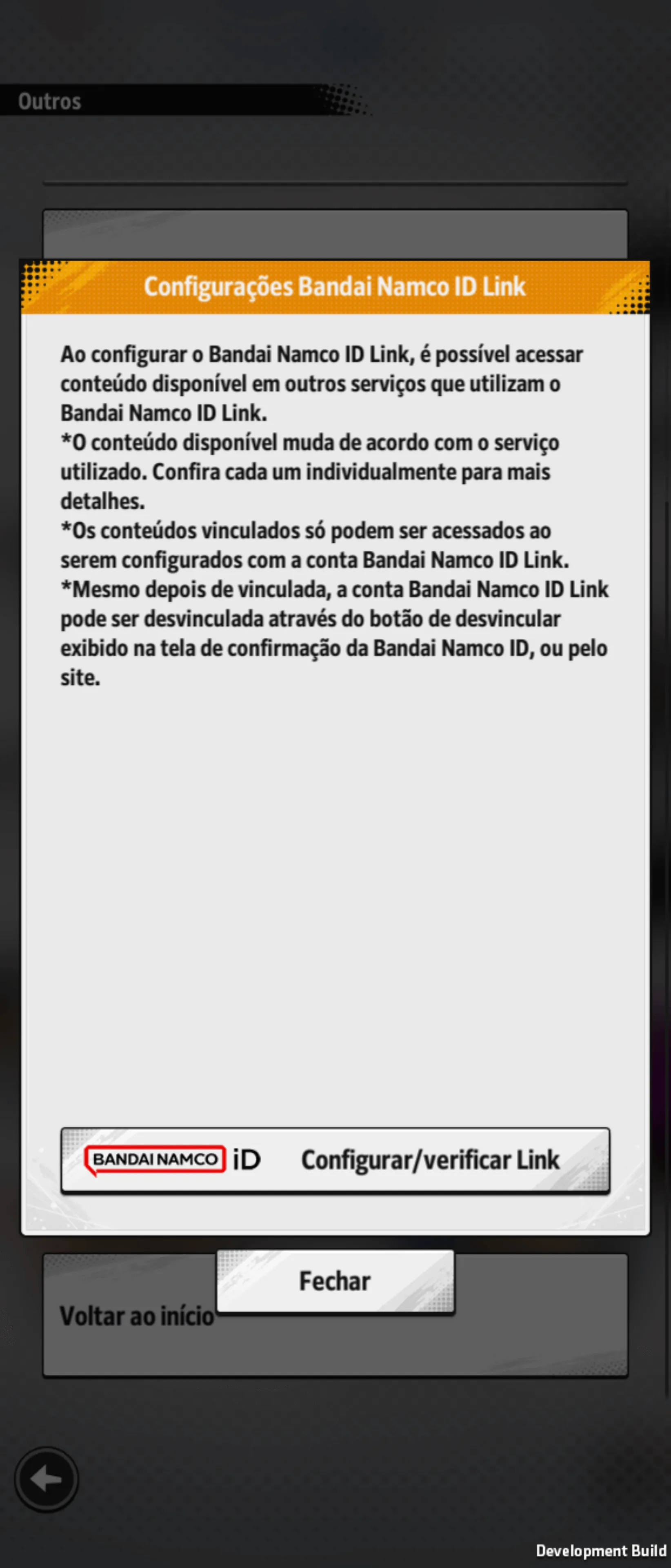 Verifique se você fez a “Configuração de Transferência de Dados” em vez das “Configurações Bandai Namco ID Link”.